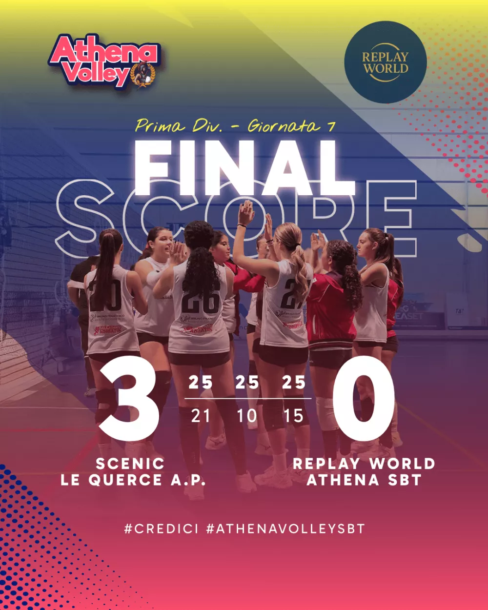 Le Querce Monticelli vs Athena Volley 3–0 (25-21, 25-10, 25-15)