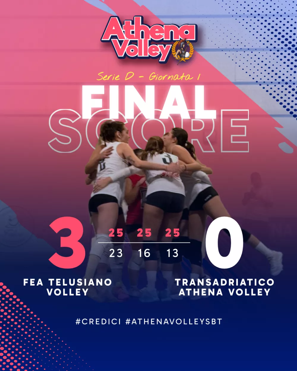 Buon avvio per la Transadriatico Athena Volley, che nella prima giornata di campionato affronta in trasferta una delle formazioni più attrezzate e candidate alla promozione: la Fea Telusiano Volley.