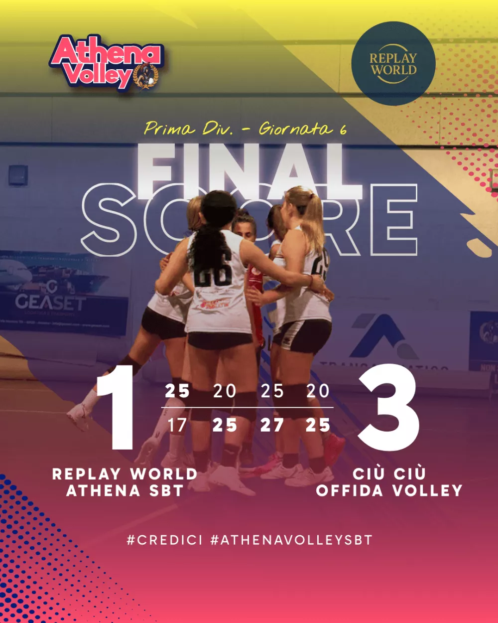 Replay World Athena SBT - Ciù Ciù Offida Volley 1-3 (25-17, 20-25, 25-27, 20-25)
