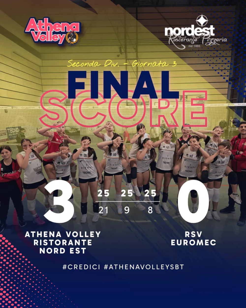 Athena Ristorante Nord-est 3-0 RSV Euromec: (25-21, 25-9, 25-8)
